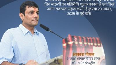 राजधानी भोपाल के व्यापारियों की संस्था भोपाल चेंबर ऑफ कॉमर्स एंड इंडस्टीज में राजनीतिक हस्तक्षेप से की बदौलत अब पदनाम का अनाधिकृत दुरूपयोग हो रहा है क्योंकि चेंबर...