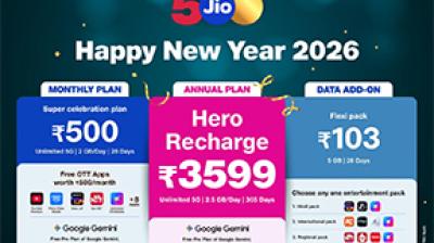 रिलायंस जियो ने हैप्पी न्यू ईयर 2026 ऑफर्स लॉन्च किए, 5जी, ओटीटी और एआई अनुभव एक साथ