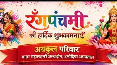 भोपाल। राजधानी की अग्रणी सामाजिक संस्था 'अग्रकुल परिवार' एवं 'माता महालक्ष्मी अन्नक्षेत्र' (हमीदिया अस्पताल) द्वारा इस वर्ष रंगपंचमी का...