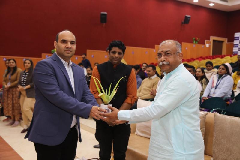 भारतीय परंपरा एवं पर्यावरण संरक्षण के संदेश को दृष्टिगत रखते हुए, अतिथियों का पौधा भेंट कर स्वागत किया गया, जो सतत विकास एवं प्रकृति के प्रति संवेदनशीलता का प्रतीक है। अपने मुख्य उद्बोधन में प्रवीण गुप्त ने राष्ट्रीय स्वयंसेवक संघ की 100 वर्षीय यात्रा पर प्रकाश डालते हुए चरित्र निर्माण, अनुशासन, सेवा-भाव तथा राष्ट्र-निर्माण में संघ की भूमिका को रेखांकित किया। उनके प्रेरणादायी विचारों एवं संगठनात्मक जीवन यात्रा ने विद्यार्थियों एवं शिक्षकों को विशेष रूप से प्रेरित किया।