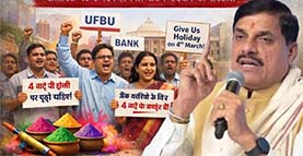 यूएफबीयू, मध्यप्रदेश के कोऑर्डिनेटर वी. के. शर्मा ने मुख्यमंत्री को पत्र लिखकर आग्रह किया है कि बैंकिंग उद्योग में भी 4 मार्च को ही होली का अवकाश घोषित किया जाए। उन्होंने कहा कि होली केवल एक पर्व नहीं, बल्कि भारतीय संस्कृति और सामाजिक समरसता का प्रतीक है। ऐसे महत्वपूर्ण त्योहार पर यदि बैंक कर्मचारी और अधिकारी अपने परिवारों के साथ समय नहीं बिता पाएंगे तो यह उनकी भावनाओं के साथ न्याय नहीं होगा।