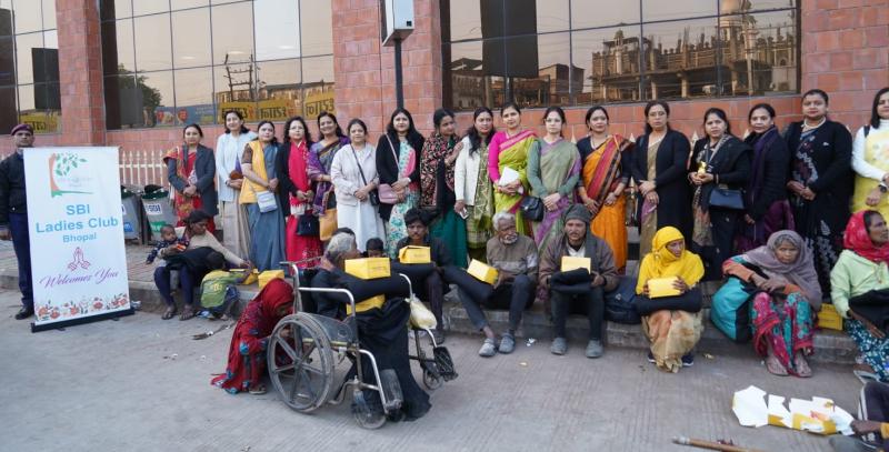 भारतीय स्टेट बैंक लेडीज क्लब ने एक बार फिर मानवता की मिसाल कायम की। भोपाल मुख्य रेलवे स्टेशन के प्लेटफॉर्म क्रमांक–1 एवं आसपास के स्थानों पर लेडीज क्लब द्वारा 100 जरूरतमंदों को कंबल एवं भोजन के पैकेट वितरित किए गए।