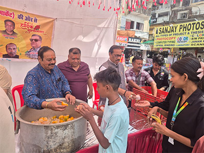व्यापारियों ने किया नववर्ष चैतीचांद पर्व पर अंगूर, केले, संतरे, चने और ठंडाई का वितरण