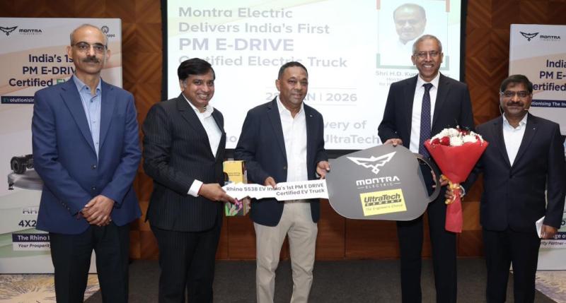 मुरूगप्पा ग्रुप के हिस्से मॉन्ट्रा इलेक्ट्रिक ने भारत की क्लीन मोबिलिटी यात्रा में एक उल्लेखनीय उपलब्धि हासिल की है। कंपनी पीएम ई-ड्राइव योजना के तहत सर्टिफिकेशन प्राप्त करने वाली पहली हैवी-ड्यूटी इलेक्ट्रिक ट्रक निर्माता बन गई है। इस उपलब्धि के साथ मॉन्ट्रा इलेक्ट्रिक ने भारत की सबसे बड़ी सीमेंट एवं रैडी-मिक्स कॉन्क्रीट कंपनी अल्ट्रा टेक सीमेंट लिमिटेड को देश का पहला पीएम ई-ड्राइव-सर्टिफाईड इलेक्ट्रिक हैवी ट्रक, राइनो 5538, ईवी 6 एक्स 4 ट्रेक्टर ट्रेलर डिलीवर किया है। यह उपलब्धि इलेक्ट्रिक वाहनों के विकास को बढ़ावा देने की कंपनी की प्रतिबद्धता को दर्शाती है।