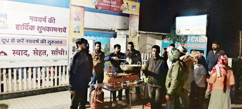 भोपाल में सांची कैफे पर राहगीरों को पिलाया मलाई युक्त ‘कढ़ाई दूध’