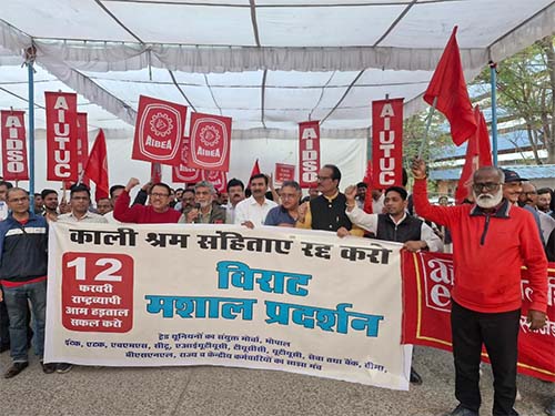 श्रम विरोधी नीतियों के खिलाफ 12 को राष्ट्रव्यापी हड़ताल - हड़ताल की पूर्व भोपाल में मशाल प्रदर्शन एवं सभा हुई