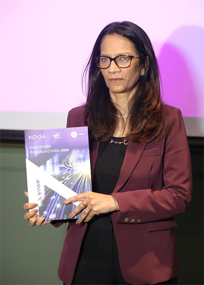 नोकिया ने अपने वार्षिक मोबाइल ब्रॉडबैंड इंडेक्स (MBiT) के 13वें संस्करण से निष्कर्ष जारी किए, जिसमें भारत के 5जी अंगीकार और डेटा उपभोग एवं रुख में सतत मजबूत गति रेखांकित की गई है। यह रिपोर्ट इस बात का खुलासा करती है कि पूरे भारत में मासिक 5जी डेटा ट्रैफिक साल दर साल 70 प्रतिशत की दर से बढ़कर 2025 में 12.2 एक्साबाइट (EB) पहुंच गया और इस प्रकार से कुल मोबाइल ब्रॉडबैंड ट्रैफिक में करीब 47 प्रतिशत योगदान यह कर रहा है। प्रति यूज़र औसत मासिक मोबाइल डेटा उपभोग 2025 में बढ़कर 31जीबी से अधिक पहुंच गया जो पिछले पांच वर्षों में 18 प्रतिशत की चक्रवृद्धि वार्षिक वृद्धि दर से बढ़ा।
