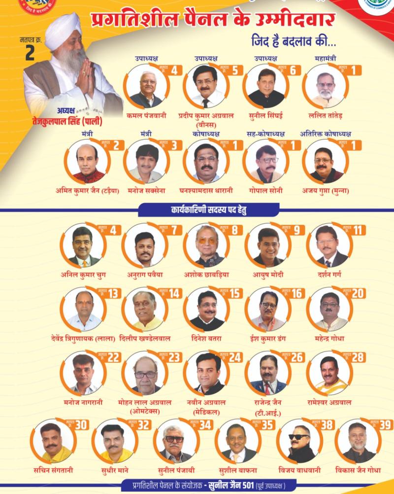 चुनाव पर्वेक्षक पीसी कोठारी और प्रगतिशील पैनल के प्रवक्ता संदीप गोधा ने बताया कि चेंबर के इस चुनावी रण में 12 पदाधिकारी पद के लिए 21 और 24 कार्यकारिणी सदस्य के लिए 38 उम्मीदवारों चुनावी मैदान में है।