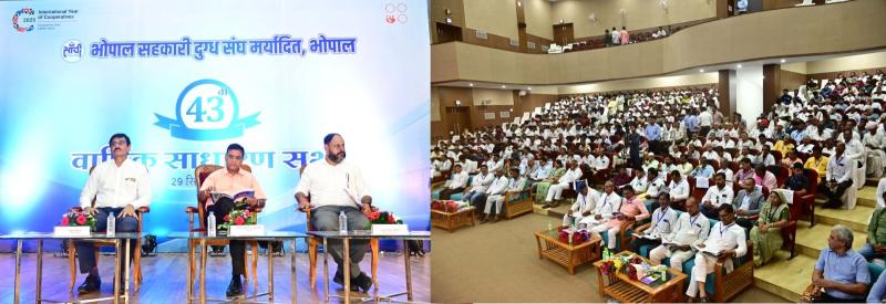 भोपाल। एमपी स्टेट कोआपरेटिव डेयरी फेडरेशन लिमिटेड (एमपीसीडीएफ) भोपाल से संबद्ध भोपाल सहकारी दुग्ध संघ मर्यादित, भोपाल की 43वीं वार्षिक साधारण सभा आयोजित हुई। सभा की अध्यक्षता प्रशासक, भोपाल सहकारी दुग्ध संघ मर्यादित, भोपाल के प्रतिनिधि प्रकाश नायक अतिरिक्त अनुविभागिय अधिकारी द्वारा की गई। संघ के मुख्य कार्यपालन अधिकारी, प्रीतेश जोशी द्वारा वार्षिक साधारण सभा में रखे गए प्रस्तावों का पर अनुमोदन प्राप्त किया गया।