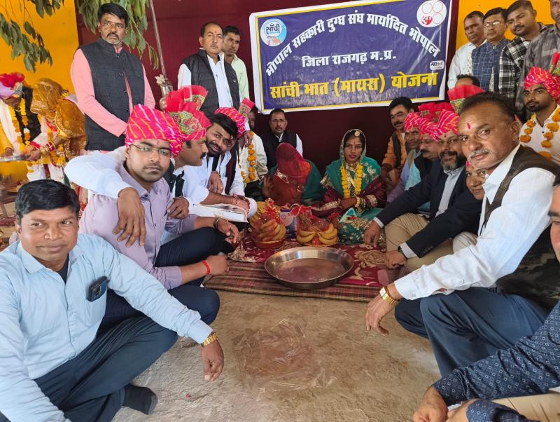 भोपाल सहकारी दुग्ध संघ के मुख्य कार्यपालन अधिकारी प्रीतेश जोशी ने राजगढ़ और सीहोर जिले के सांची दुग्ध उत्पादक किसान की दो बेटियों रूकमणि और रितु के शुभ विवाह में ‘सांची मायरा’ (भात) का थाल सौंपा है। सौंपे गए थाल में 11-11 हजार रूपए नगद, उपहार रूवरूप साड़ियां, कपड़े, सांची गिफ्ट पेक, फल-श्रीफल व मिठाईयां शामिल है।