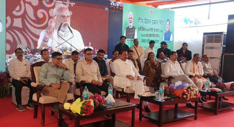 भोपाल। राजधानी के करोंद स्थित मंडी प्रांगण में पीएम किसान सम्मान निधि कार्यक्रम के तहत राज्य स्तरीय कार्यक्रम आयोजित हुआ। जिसमें मुख्य अतिथि के रूप में कृषि मंत्र ऐदल सिंह कंसाना उपस्थित हुए। इसके साथ ही कृषि सचिव निशांत वरवड़े ,कृषि संचालक अजय गुप्ता, मंडी बोर्ड के आयुक्त कुमार पुरुषोत्तम,संयुक्त संचालक अपर कलेक्टर श्रीमती रितु चौहान, किसान नेता रवीश चौहान, ग्रेन मर्चेंट एसोसिएशन के अध्यक्ष हरीश ज्ञानचंदानी, अशोक मीणा, जगदीश यादव कार्यक्रम में उपस्थित रहे। वाराणसी में आयोजित कार्यक्रम का सजीव प्रसारण मध्य प्रदेश की समस्त 259 मंडियों में लाखों किसानों देखा।