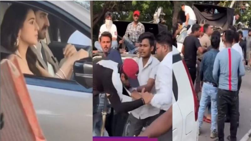 प्रयागराज: एक्टर आयुष्मान खुराना और सारा अली खान की आने वाली फिल्म 'पति पत्नी और वो 2' की शूटिंग आजकल यूपी के प्रयागराज में चल रही है। इस दौरान सेट पर बवाल की खबर सामने आई है। एक शख्स ने फिल्म के क्रू पर हमला कर दिया जिसे पुलिस ने गिरफ्तार कर लिया है। हमले की घटना 27 अगस्त की है। 28 को एफआईआर दर्ज कराई गई। आरोपी की पहचान मेराज अली के रूप में हुई है। मारपीट से जुड़ा एक वीडियो भी वायरल हो रहा है।
