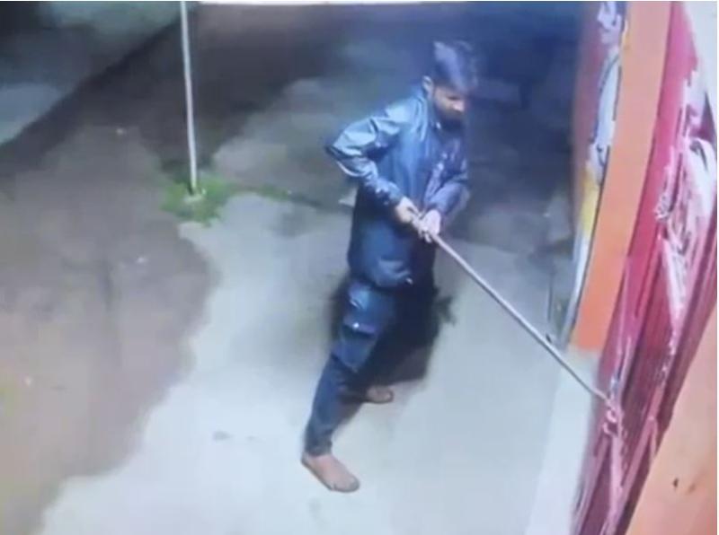 सीसीटीवी में साफ दिख रहा है कि कैसे चोर लंबी रॉड से मंदिर के गेट का ताला तोड़ रहे हैं। चोर ने देखा कि मंदिर के गेट पर सीसीटीवी कैमरा लगा हुआ है। तब वह रुका और सीसीटीवी कैमरे को ही घुमा दिया। उसके बाद मंदिर के गेट का ताला तोड़कर मंदिर के अंदर घुसते हैं।