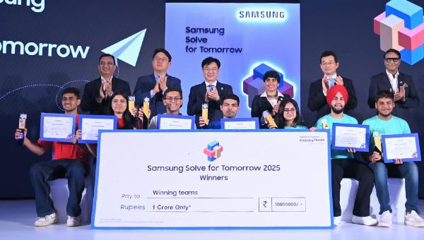 इलेक्ट्रॉनिक्स ब्रांड सैमसंग ने अपने राष्ट्रीय शिक्षा कार्यक्रम ‘सैमसंग सॉल्व फॉर टुमॉरो 2025’ के चौथे संस्करण के विजेताओं की घोषणा की। यह कार्यक्रम युवा छात्रों को प्रेरित करता है कि वे तकनीक के माध्यम से अपने समुदायों की वास्तविक चुनौतियों के लिए व्यावहारिक और प्रभावशाली समाधान विकसित करें।