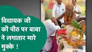 पूरा मामला भिंड जिले के बेरछा गांव का है. यहां भगवत कथा का आयोजन किया गया था. इस दौरान सेवढ़ा से बीजेपी विधायक प्रदीप अग्रवाल बाबा सीताराम महाराज का आशीर्वाद लेने पहुंचे थे. विधायक ने बाबा को सम्मानित करते हुए माला पहनाई. पहले तो बाबा कुछ नहीं बोले, लेकिन तभी अचानक बाबा को गुस्सा आ गया और उन्होंने विधायक की पीठ पर मुक्के मारने शुरू कर दिए. इसके विधायक को हटाते हुए बाबा ने धक्का भी दे दिया. इतना ही नहीं विधायक ने जो माला बाबा को पहनाई थी, उन्होंने वह माला भी फेंक दी|