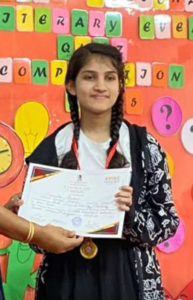 कु. अन्वेषा ठाकुर ने एसोसियेसन ऑफ स्कूल फॉर द इण्डियन स्कूल सर्टिफिकेट द्वारा 2 अगस्त 2025 को एमएसबी एजूकेशनल इंस्टीटयूट में यह उपलब्धि हासिल की है।