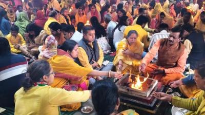 24 कुंडीय महायज्ञ में सैकड़ों श्रद्धालुओं ने दी आहूतियां, फिर ली भंडारे में प्रसादी