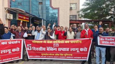 भोपाल। पांच दिवसीय बैंकिंग सप्ताह लागू करने की मांग को लेकर यूनाइटेड फोरम ऑफ़ बैंक यूनियंस द्वारा मंगलवार...