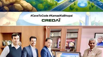 नॉलेज एंड एआई सिटी की घोषणा के लिए क्रेडाई द्वारा मुख्य सचिव का आभार व्यक्त करते हुए भेंट की गई ‘केव टू कोड कलाकृति.