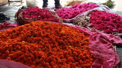 बाजार में आई फूलों की बहार, सजें बाजार, दीपक, झाड़ू, मोरपंख की बिक्री