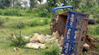 मझौली बस स्टैंड के पास पलटा ट्रैक्टर