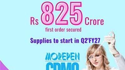 मोरेपेन लेबोरेटरीज लिमिटेड (NSE: MOREPENLAB; BSE: 500288) ने एक अग्रणी वैश्विक फार्मा कंपनी से लगभग ₹825 करोड़ (USD 91 मिलियन) का बहुवर्षीय कॉन्ट्रैक्ट डेवलपमेंट एंड मैन्युफैक्चरिंग ऑर्गनाइजेशन (CDMO) ऑर्डर...